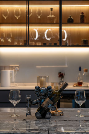 This 4-room BTO HDB at Blk 117A Jalan Tenteram underwent a major renovation to create a modern luxury home. The design incorporated ambient, cove, and smart lighting to set the mood, while wall paintings transformed the space into an art gallery. The open-concept kitchen, achieved by hacking down walls, seamlessly flows into the living area. A dedicated space for relaxation and a wine chiller with display cabinet cater to the homeowner's lifestyle. The master bedroom and bedroom 2 were combined to create a spacious private retreat, complete with a private study area. Both bathrooms were designed with luxury in mind, featuring pedestal basins, a large master bathroom with a bathtub and shower, and large tiles. The addition of arch-framed glass doors and LED lights beneath the beds further enhances the modern and luxurious aesthetic.